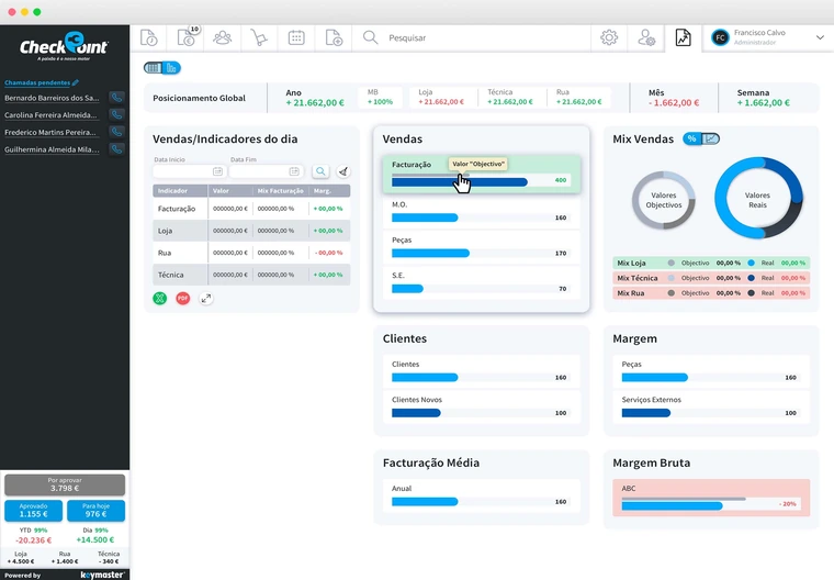 • Ranking interno da sua equipa (se Módulo Inteligência de Negócio)