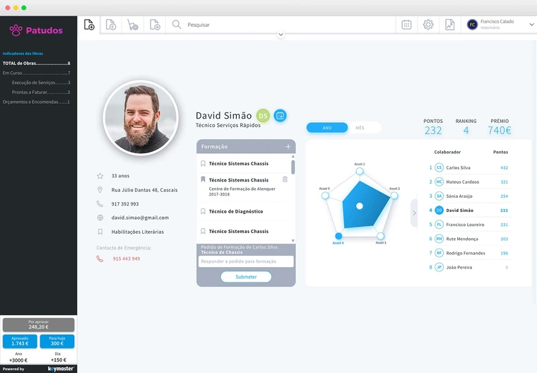 • Perfis e Interfaces à medida de cada Utilizador, desenhados para corresponder à realidade e permissões de cada um dos Intervenientes